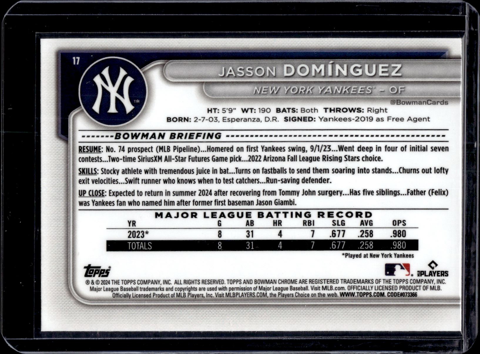 Jasson Dominguez Mega Box Mojo Refractor RC 2024 Bowman Chrome #17