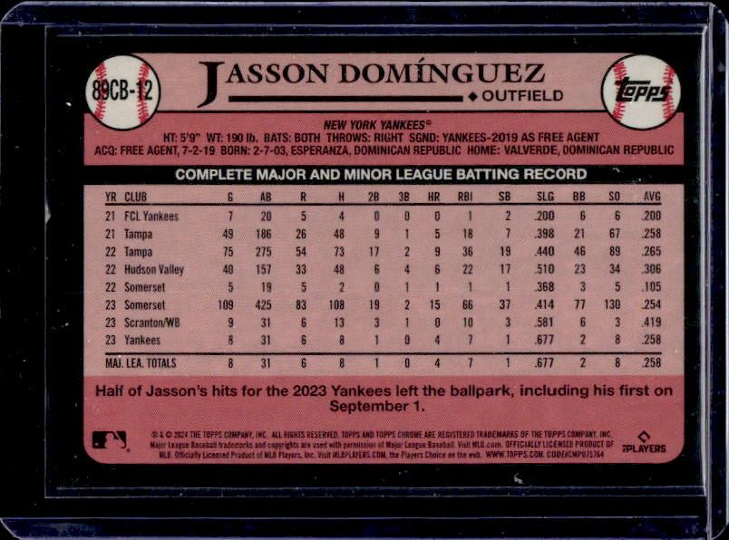 Jasson Dominguez Refractor RC 2024 Topps Chrome #89CB-12