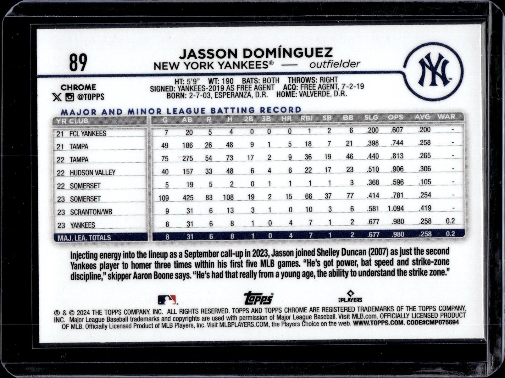 Jasson Dominguez Xfractor RC 2024 Topps Chrome #89
