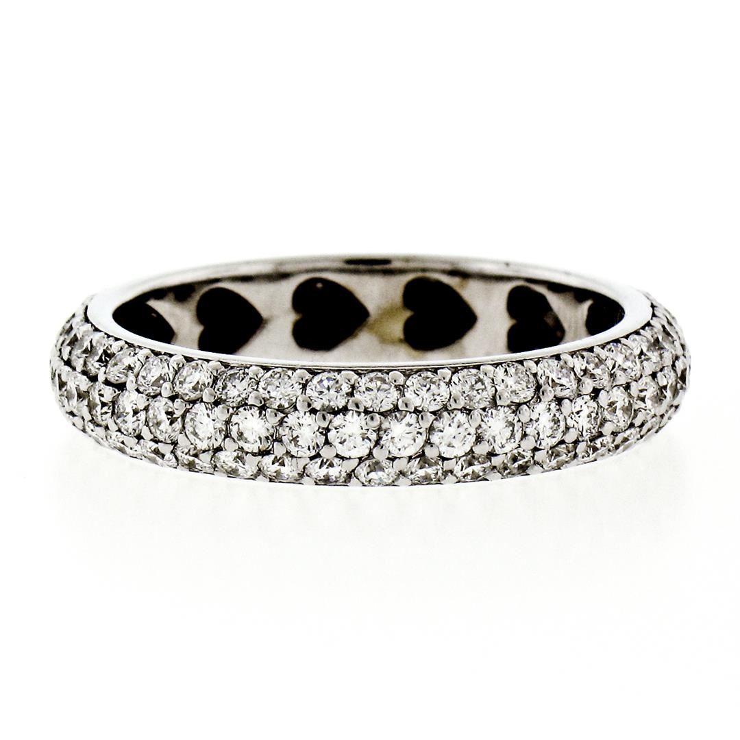 An estate solid 14k white gold band ring by Javda, featuring 120 round brilliant cut natural diamonds (F/G - VVS2/VS1; 2.50ctw). The ring is size 7.0, weighs a total of 3.63 grams, and measures 4.15mm wide.