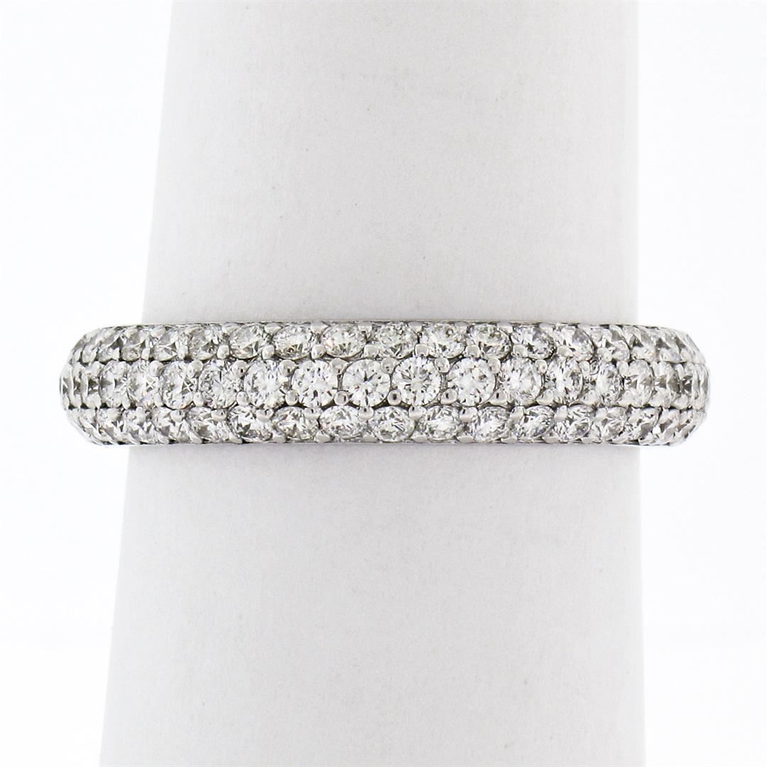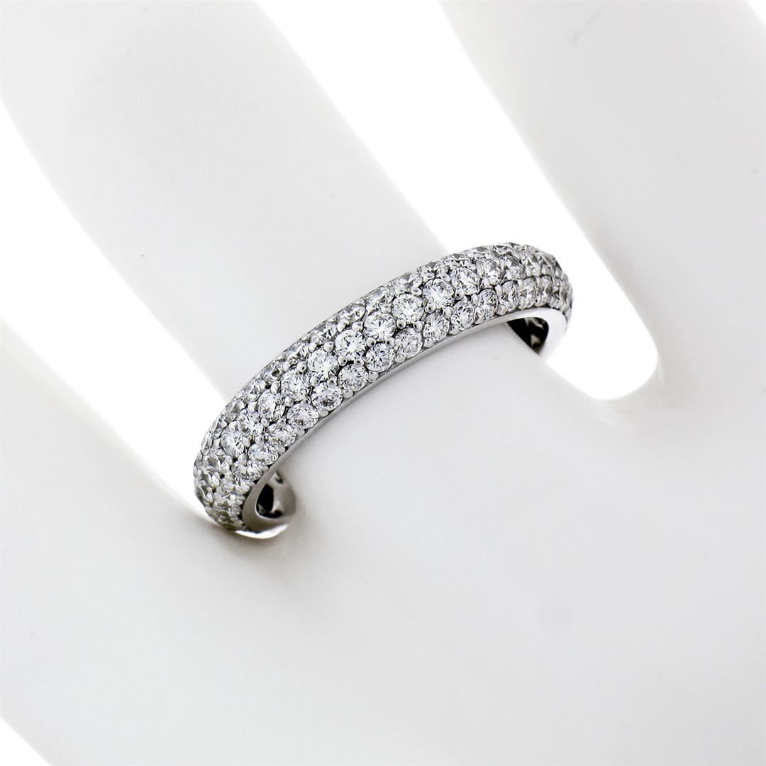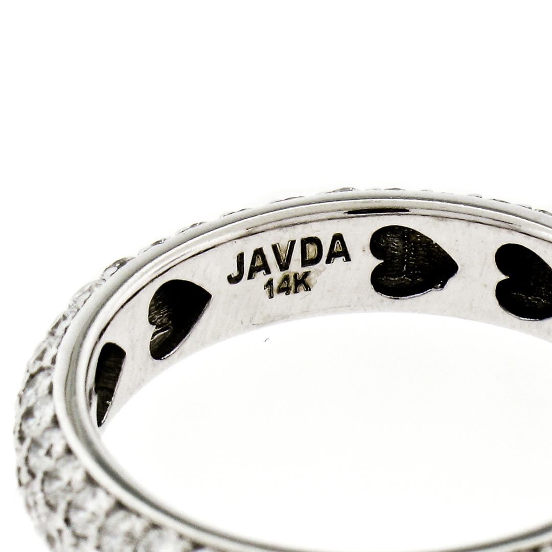 An estate solid 14k white gold band ring by Javda, featuring 120 round brilliant cut natural diamonds (F/G - VVS2/VS1; 2.50ctw). The ring is size 7.0, weighs a total of 3.63 grams, and measures 4.15mm wide.