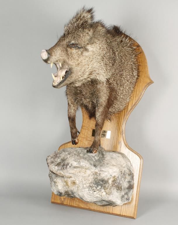 Shot near Mammnouth Arizona by Dale Kelling with a 44 magnum revolver. Mounted on oak board. Measures approx. 39" x 18".