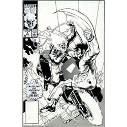 Javier Saltares - Original Cover Art for Ghost Rider #4 (Marvel, 1990). Explosive is a term that beautifully sums up this staggering cover, showing Ghost Rider in pitched battle against the maniacal Mr. Hyde. Javier Saltares did a masterful job depicting this popular '70s and '80s character. A lot of passion went into creating this dynamic cover. The art is in excellent condition with no wear or white-out, and measures 10" x 15". Important notice: We expect to be auctioning lots at the rate of 200-250 per hour. Sometimes eBay Premier live bid software cannot keep up with that pace, so we strongly recommend that you place a realistic proxy bid now as insurance to avoid disappointment. Also please note that all Heritage/CAA lots purchased through eBay Premier carry a 20% Buyer's Premium.