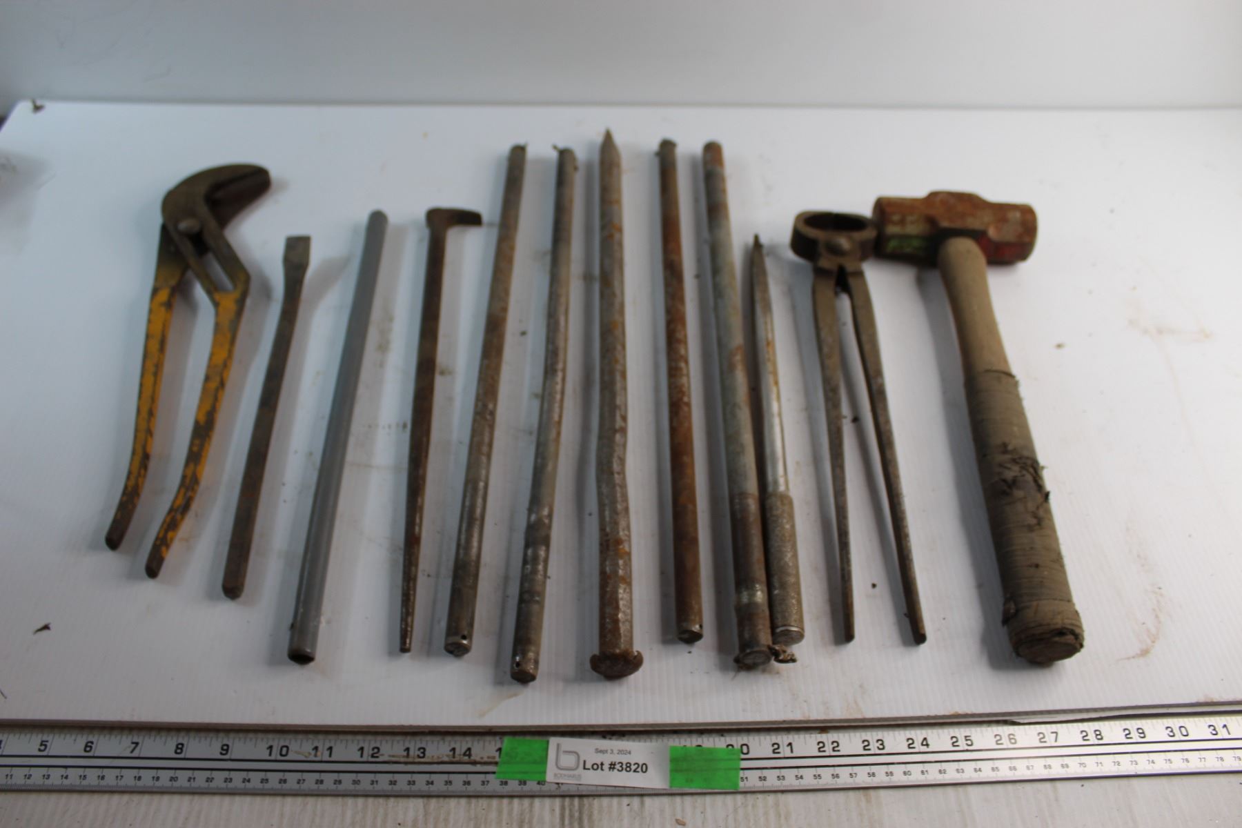 Jaw Locking Pliers, Hammer, Nail Puller and Assorted Items