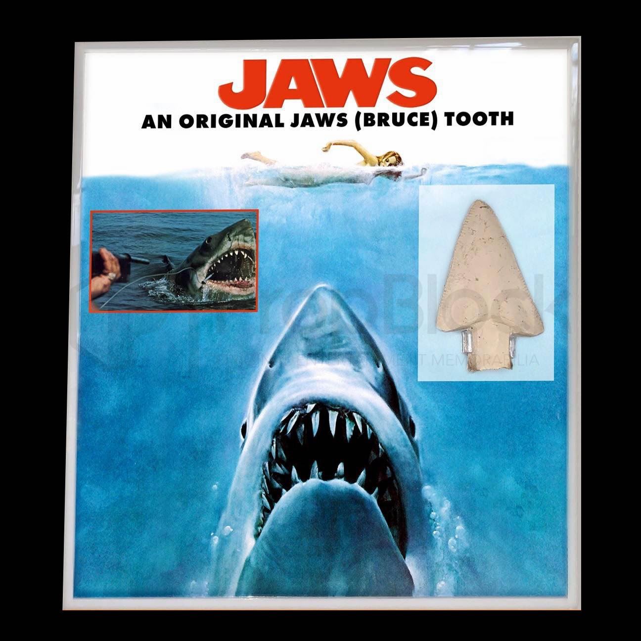 Original tooth used on the full scale "Bruce" puppet used in the filming of the 1975 Steven Spielberg classic Jaws. When a killer shark unleashes chaos on a beach community, it's up to a local sheriff, a marine biologist, and an old seafarer to hunt the beast down. This tooth is white in color and made of resin. The piece includes a custom made acrylic display and remains in excellent, production used condition.