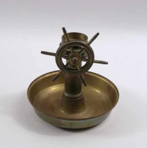 Jaws Quint's (Robert Shaw) Boat Candle Holder Prop - All these years later it's hard to imagine that Steven Spielberg's first grand success "Jaws" (1975) was shut down five times by Universal Studios during production, and Spielberg was forced to steal camera equipment and do much needed re-shoots in his editors, Verna Fields', Van Nuys house swimming pool! This is a boat-wheel candle holder that was part of the set direction in Quint's (Robert Shaw) boat. (Approx. 5 1/2" x 5").