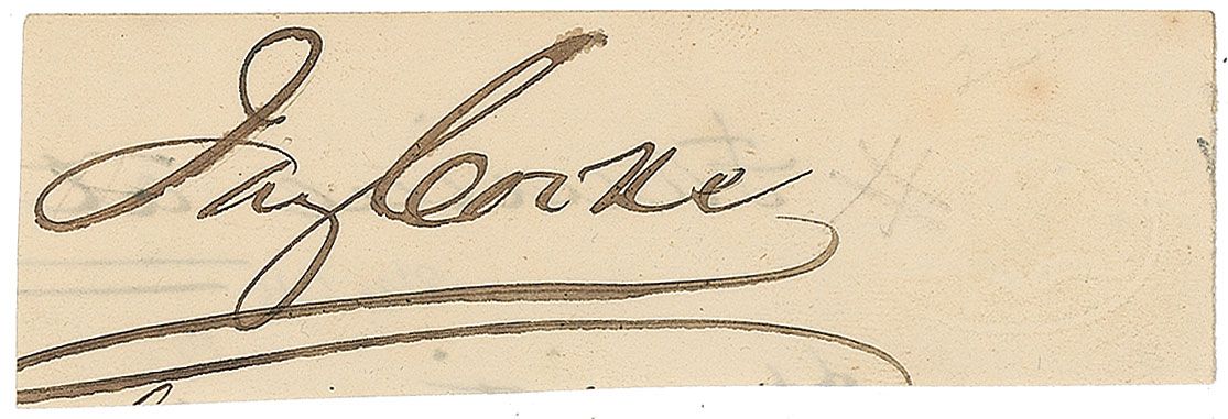 American Civil War financier and railroad magnate (1821–1905). Vintage ink signature, “Jay Cooke,” on an off-white 3.5 x 1.25 slip clipped from a larger document. The paraph slightly clipped, a light erased pencil notation to the right, and some show-through from writing on the reverse, otherwise fine condition.