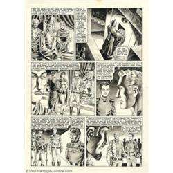 Jay Disbrow - Original Art for The Flames of Gyro, Complete 32-page Story (Fantagraphics, 1979). This wonderful set of pages also includes the inside front cover art that featured "...the cast of The Flames of Gyro." Jay Disbrow's Golden Age roots are unmistakable in this epic space opera which he also wrote. However, this mature work manages to possess that nostalgic appeal while displaying an obviously refined style that is rendered beautifully with washes. Each page is worthy of individual display. Together, they represent an absolute coup for some lucky bidder. This story was obviously a labor of love for Disbrow. Each panel is a throughout work of art with detailed images and backgrounds that are overflowing with space ships, breath taking landscapes, and monstrous creatures that never look cluttered. These pages are in exceptional condition with virtually no use of white-out or staining. Only two panels in the entire story have edited text boxes, which were all hand rendered on the pages. The pages are a huge 16" x 22" in size with an image area of 14" x 20". Important notice: Heritage usually auctions material at the rate of 200-250 lots per hour. On some occasions eBay Live bid software or the Internet may not be able to keep up with the pace of the auction. We recommend placing a realistic absentee bid now as insurance to avoid disappointment. Occasionally the auctioneer may eliminate or reject an eBay Live bid, and the auctioneer may also reopen a lot after the close of the eBay live bidding (usually because we missed an audience bid), and may reject your bid even if it shows you as the winning bidder. By bidding via eBay Live, you agree that Heritage may award the lot to another bidder at its sole discretion under the circumstances described above or any other reasonable circumstances. Also please note that all Heritage lots purchased through eBay Live carry a 20% Buyer's Premium. Please make sure you read the Terms and Conditions before you bid.