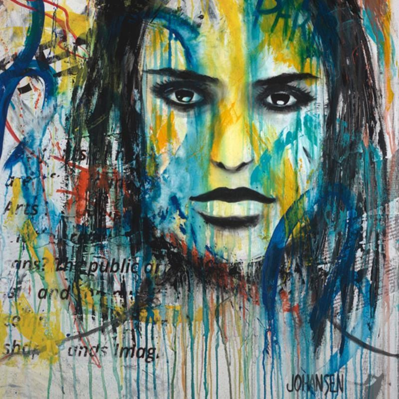 "Huntress" is an original painting, mixed media on stretched canvas, by Jay Johansen. It is hand signed by the artist and accompanied by a certificate of authenticity. Measures approximately 40" x 31" (image).