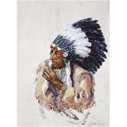 Jay Lee Cross (1889-1950) (California) Oil on Board, "Peace Chief," 16" x 12", signed lower right, Est $700 - $900