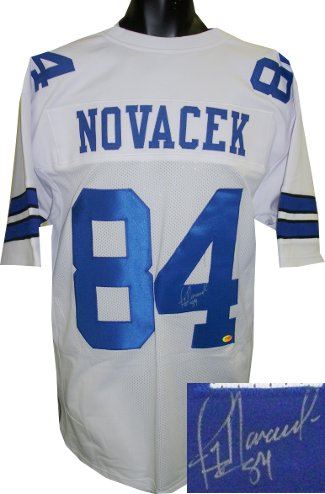 Jay Novacek was a key contributor for Dallas in the early 1990s, assisting them to three Super Bowl wins in four seasons. In those games, he recorded a combined total of 17 receptions for 148 yards and two touchdowns. In his 11 seasons, Novacek recorded 422 receptions for 4,630 yards and 30 touchdowns. Jay Novacek has hand signed this Dallas Cowboys White Prostyle Jersey. Apex Sports Marketing Hologram and Certificate of Authenticity from Athlon Sports.