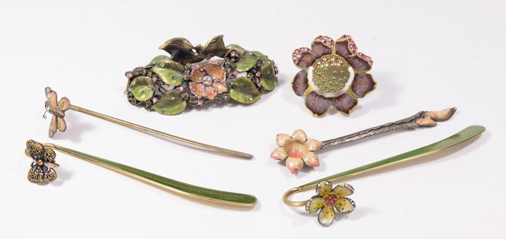 Including bookmarks - 2 floral, 1 butterfly, and 2 additional unsigned; and a floral Jay Strongwater cover.