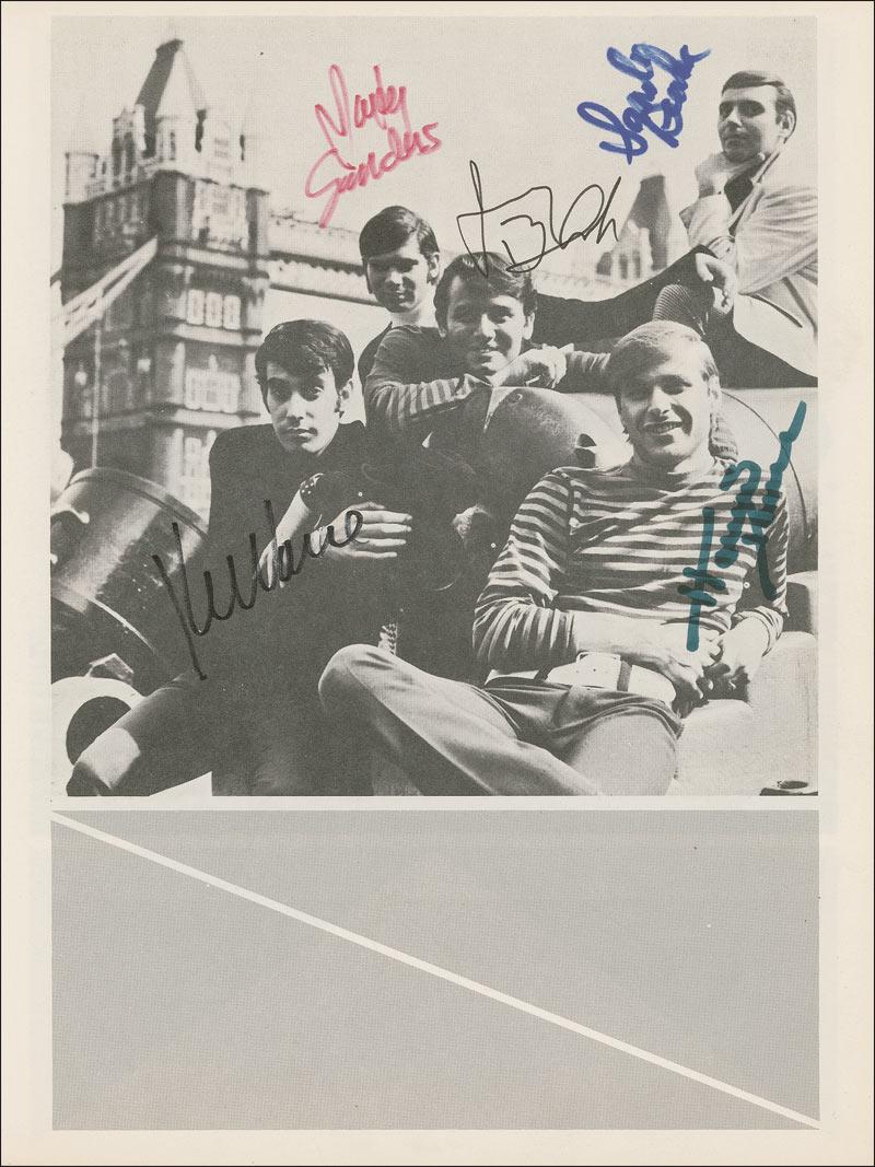 An 8.5 x 11 songbook group photo, signed in various color felt tip by Jay Black, Kenny Vance, Howie Kane, Marty Sanders, and Sandy Deanne. In fine condition.