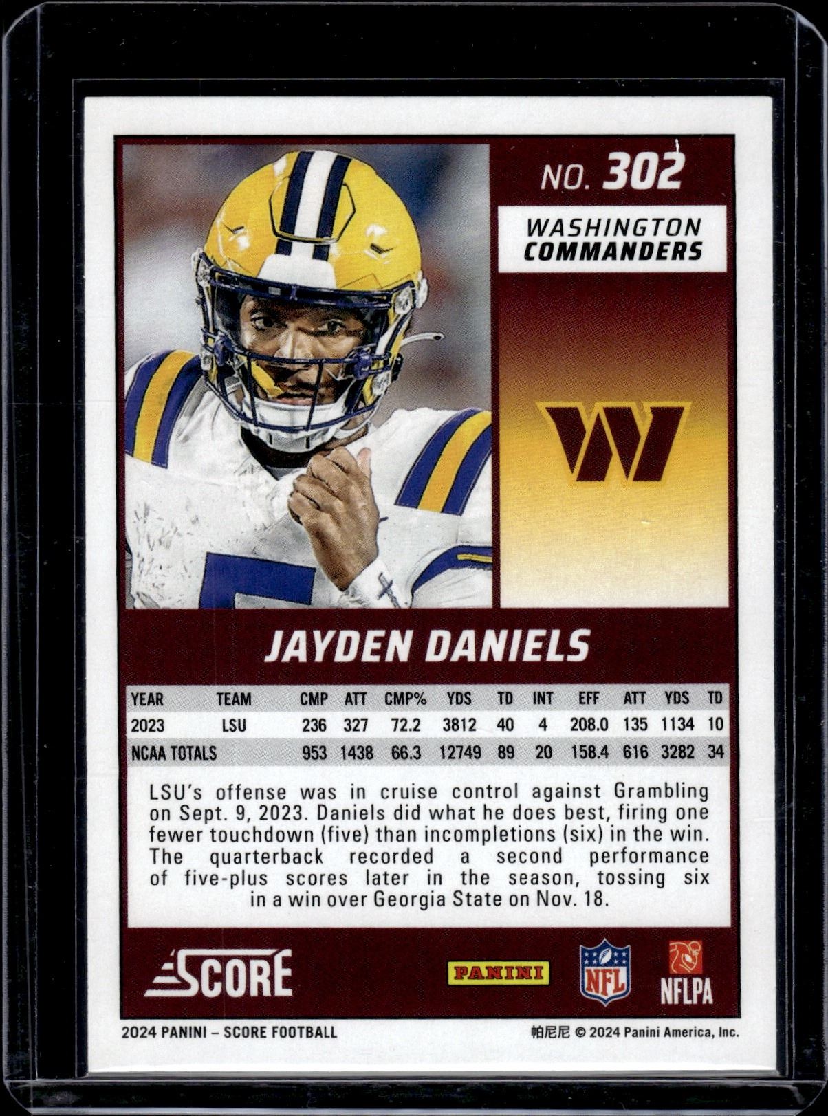 Jayden Daniels RC 2024 Panini Score #302