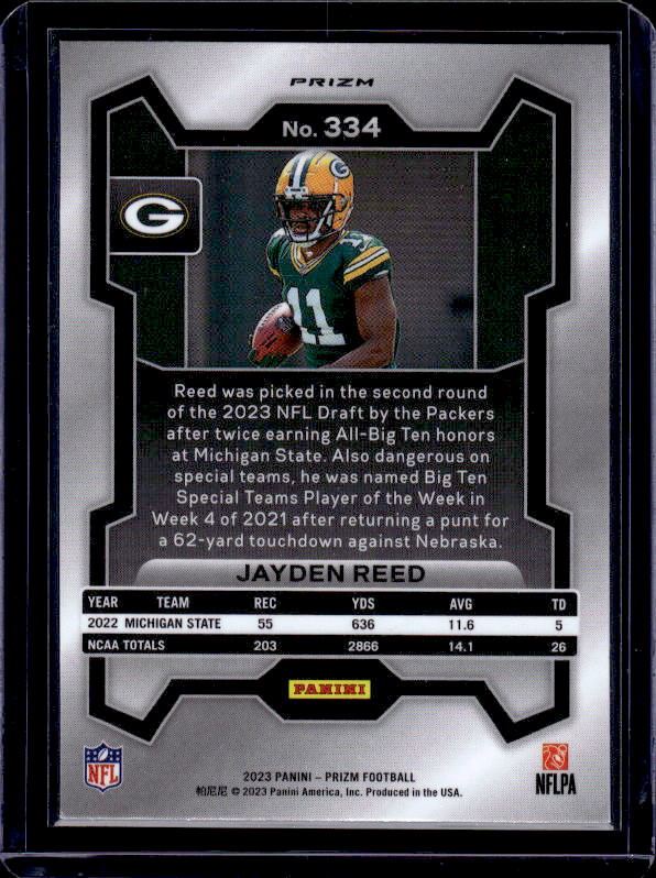Jayden Reed Green Wave Prizm Rookie Card 2023 Prizm #334