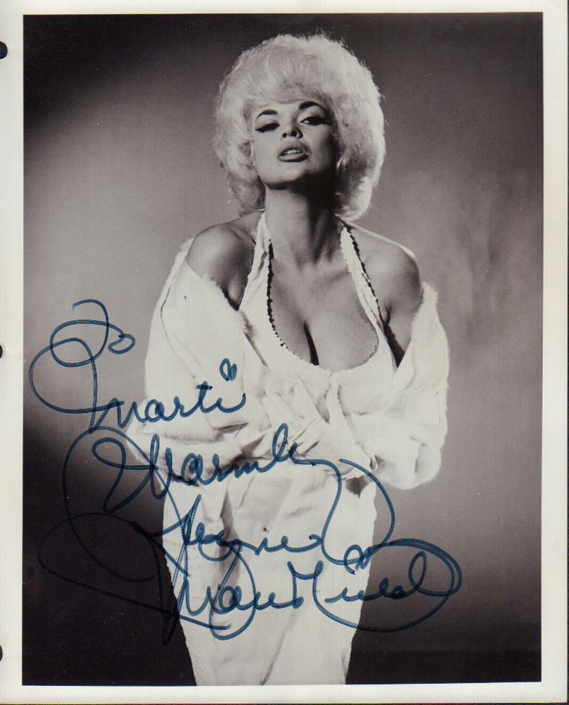 Black and white vintage 8x10 photo inscribed to Marti and signed by Jayne Mansfield. All items come with a certificate of authenticity good for the life of the piece.