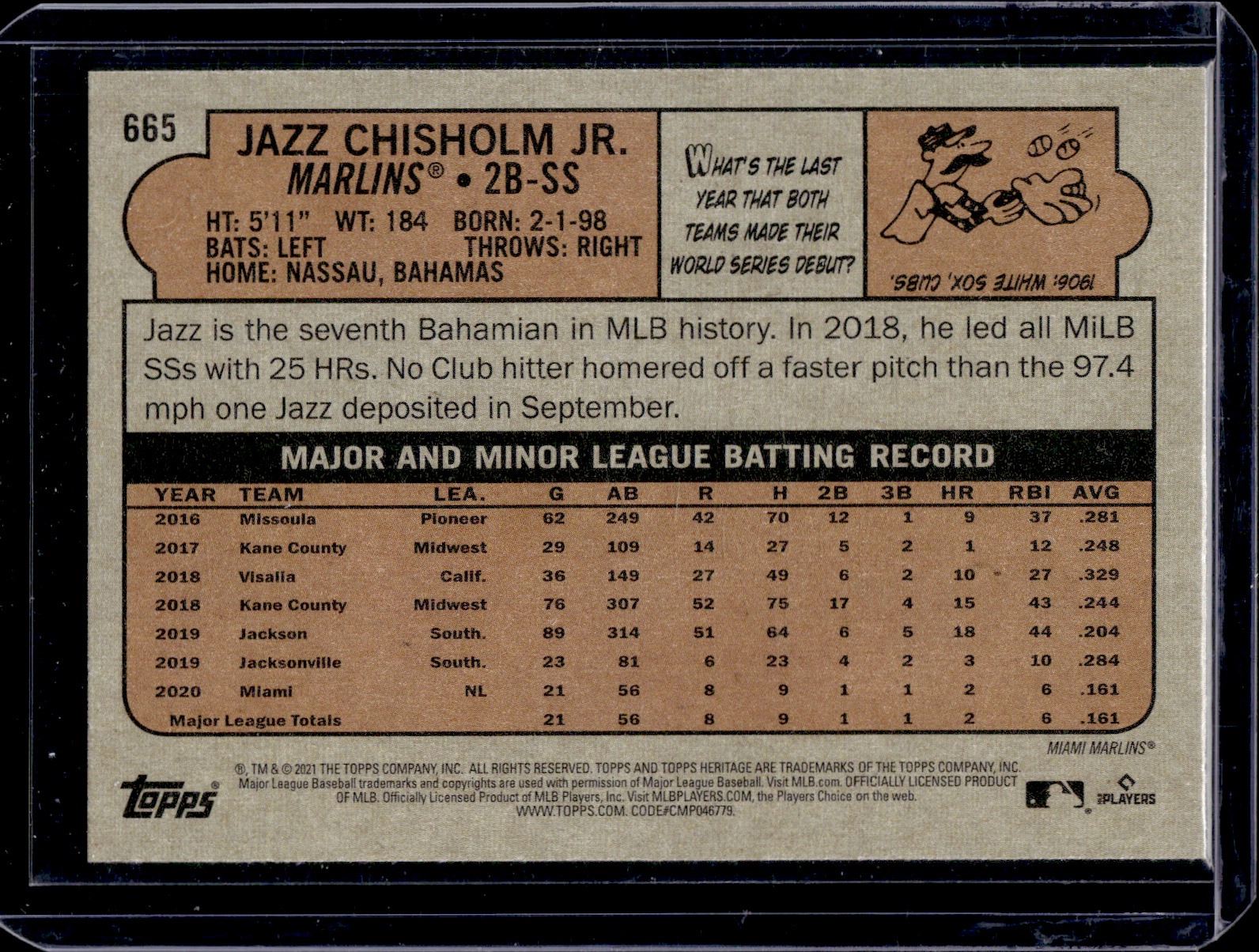 Jazz Chisholm Jr. RC 2021 Topps Archives #665
