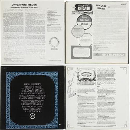 <B>Group Of Four signed Jazz LPs Including Dill Jones, Bobby Hackett, Dick Wellstood.</B></I> Each signed by some or all of the album's players. Includes Dill Jones' <I>Plays Bix And Others</B></I> signed by Jones, <I>Meet Me In Chicago</B></I> signed by Vic Dickinson, Bobby Hackett's <I>Creole Cookin'</B></I> signed by Bob Wilber, and Dick Welstood <I>Plays Ragtime Music Of The Sting</B></I> signed by himself.<BR><BR><b>Shipping:</b> Recordings (<a target="_blank" href="http://www.heritageauctions.com/common/shipping.php">view shipping information</a>)
