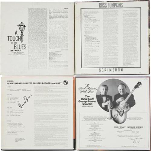 <B>Signed Jazz LP And Photo Group, Including Billy Butterfield, Ruby Braff, Ross Tompkins and George Barnes.</B></I> Each signed by one or more of the album's performers. Includes Lee Wiley and Billy Butterfield's <I>A Touch Of The Blues</B></I> signed by Butterfield with a signed photo of him, Rudy Braff and George Barnes Quartet <I>Salutes Rodgers And Hart</B></I> signed by Braff and Barnes with a signed picture of Braff, Ross Tompkins' <I>Scrimshaw</B></I> signed by Tompkins with a signed picture of him, and The Ruby Braff / George Barnes Quartet's <I>"To Fred Astaire, With Love"</B></I> signed by Braff with a signed picture of him.<BR><BR><b>Shipping:</b> Recordings (<a target="_blank" href="http://www.heritageauctions.com/common/shipping.php">view shipping information</a>)