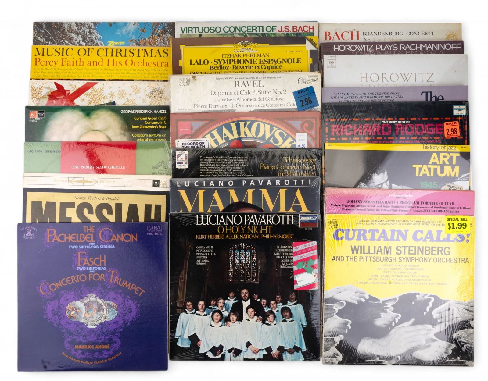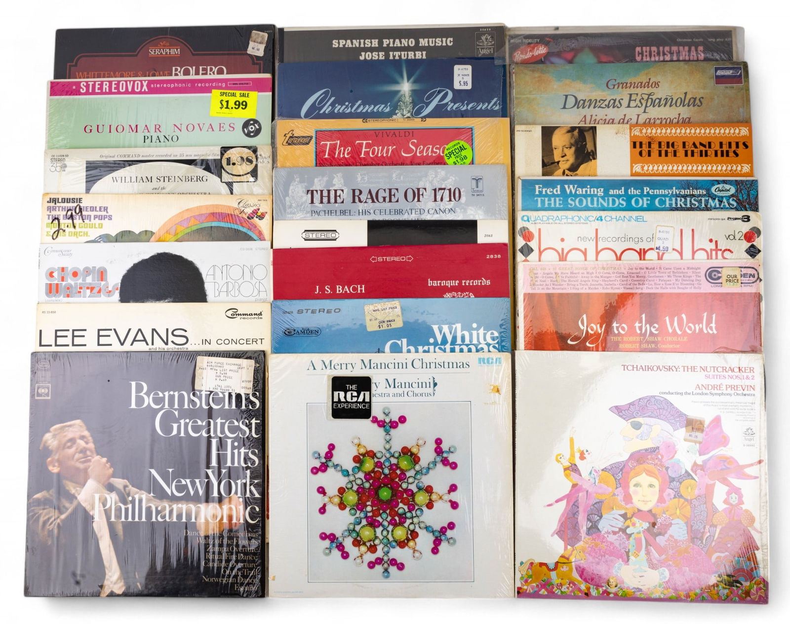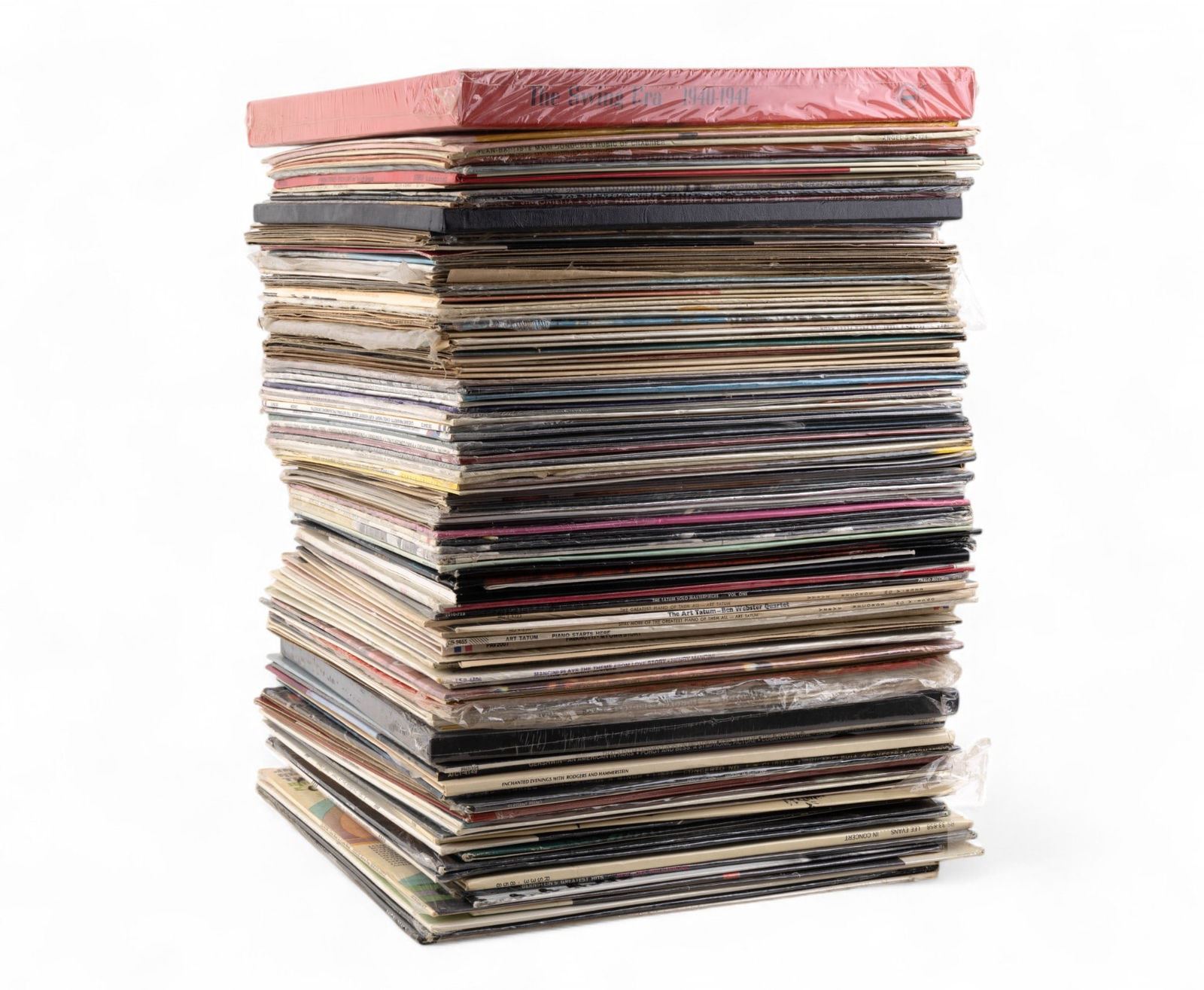 Over 100 assorted vinyl of mostly jazz and classical featuring several by Marian McPartland including promotional photos and materials; others by Oscar Peterson, Ahmad Jamal, Debussy, Brahms, Pavoratti, Henry Mancini, Leonard Bernstein, and more.