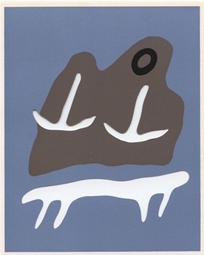 Jean Arp Silkscreen with cutouts, "Mountain, Table, Anchors, Navel" - Medium: Silkscreen with cut-outs (after the oil on cardboard with cut-outs) - Published in New York in 1958 for a Museum of Modern Art exhibition catalogue, there is a printed text inscription 4mm beneath the image - Image Size: 7 1/2 X 6 Inches -- 190 X 152mm - Professionally Framed & Matted - Comes With Certificate - -