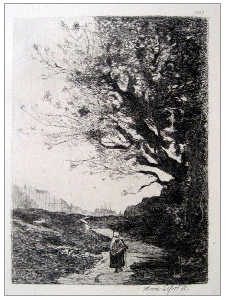 Jean-Baptiste Corot etching | Paysage Italien - Medium: etching. Etched by Henri Lefort after Corot. Published in Paris by ca. 1871. Plate size: 5 1/2 x 4 inches - Professionally Framed & Matted - Comes With Certificate - -