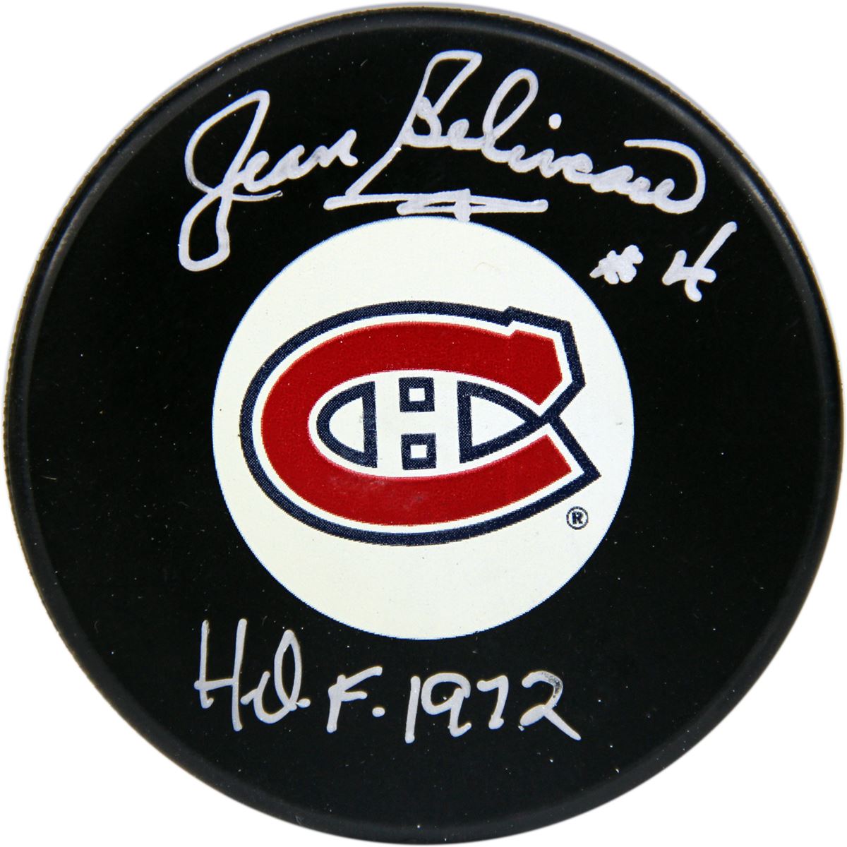 Jean Beliveau Montreal Canadiens Signed Puck with HOF 1972 Insc (AJ Sports Auth)