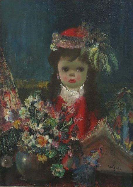 Oil on canvas. Framed. Signed lower right. Jean Caloquero, French (1922-2003). Approx. 18" H x 13" W unframed, 25" H x 20" W framed. Property of a Bernardsville NJ collection (4069).