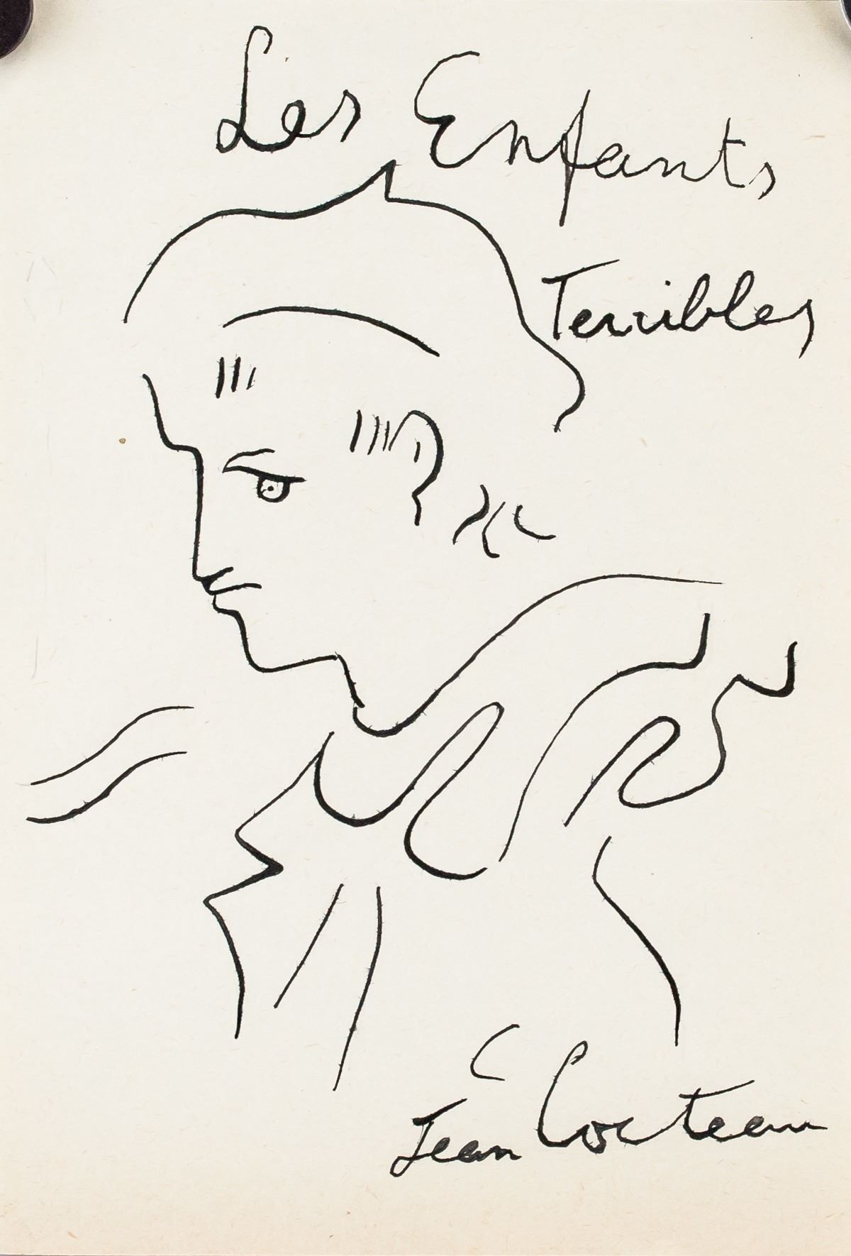 Ink on paper. Featuring a cubist portrait. Signed Jean Cocteau on the lower right corner. Inscribed Les Enfants Terribles on the upper right corner. Attributed to Jean Cocteau (1889-1963, French). 21 x 15 cm (8.25 x 5.75 in). PROVENANCE: This lot carries limited provenance from an Upper New York estate