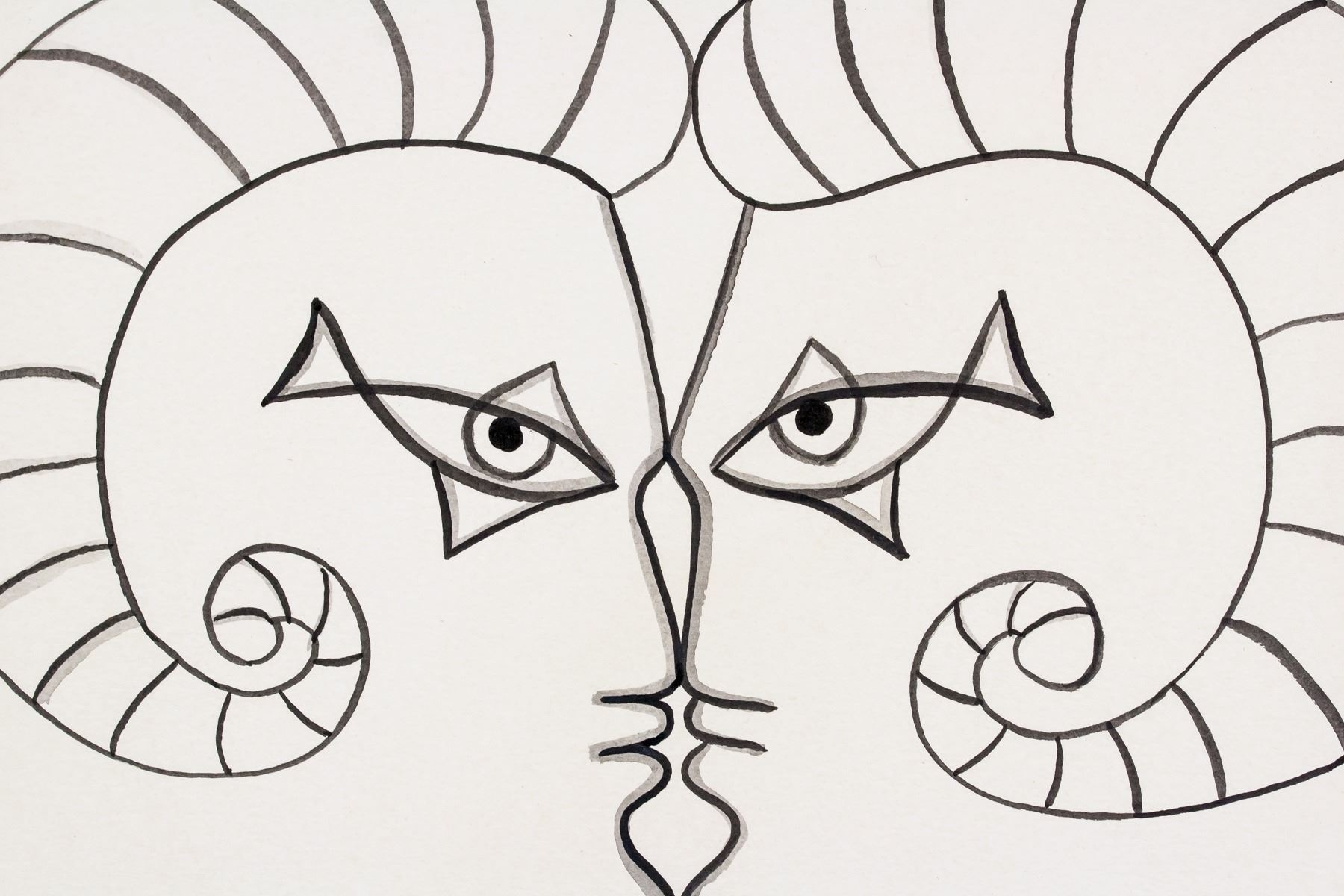 Ink on paper. Featuring a portrait with horns. Signed Jean Cocteau " on the lower edge. Attributed to Jean Coctuea (1889-1963, French). 29.5 x 21 cm (11.5 x 8.25 in). PROVENANCE: This lot carries limited provenance from an Upper New York estate
