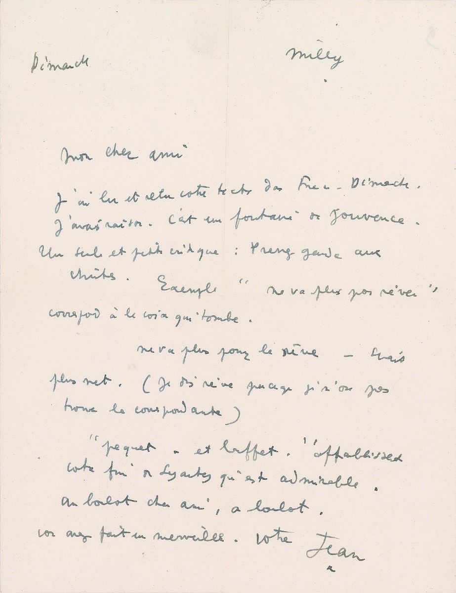 ALS in French, signed “Jean,” one page, 8.25 x 10.5, no date. Untranslated letter offering both praise and criticism on some writing. In fine condition. Pre-certified PSA/DNA.
