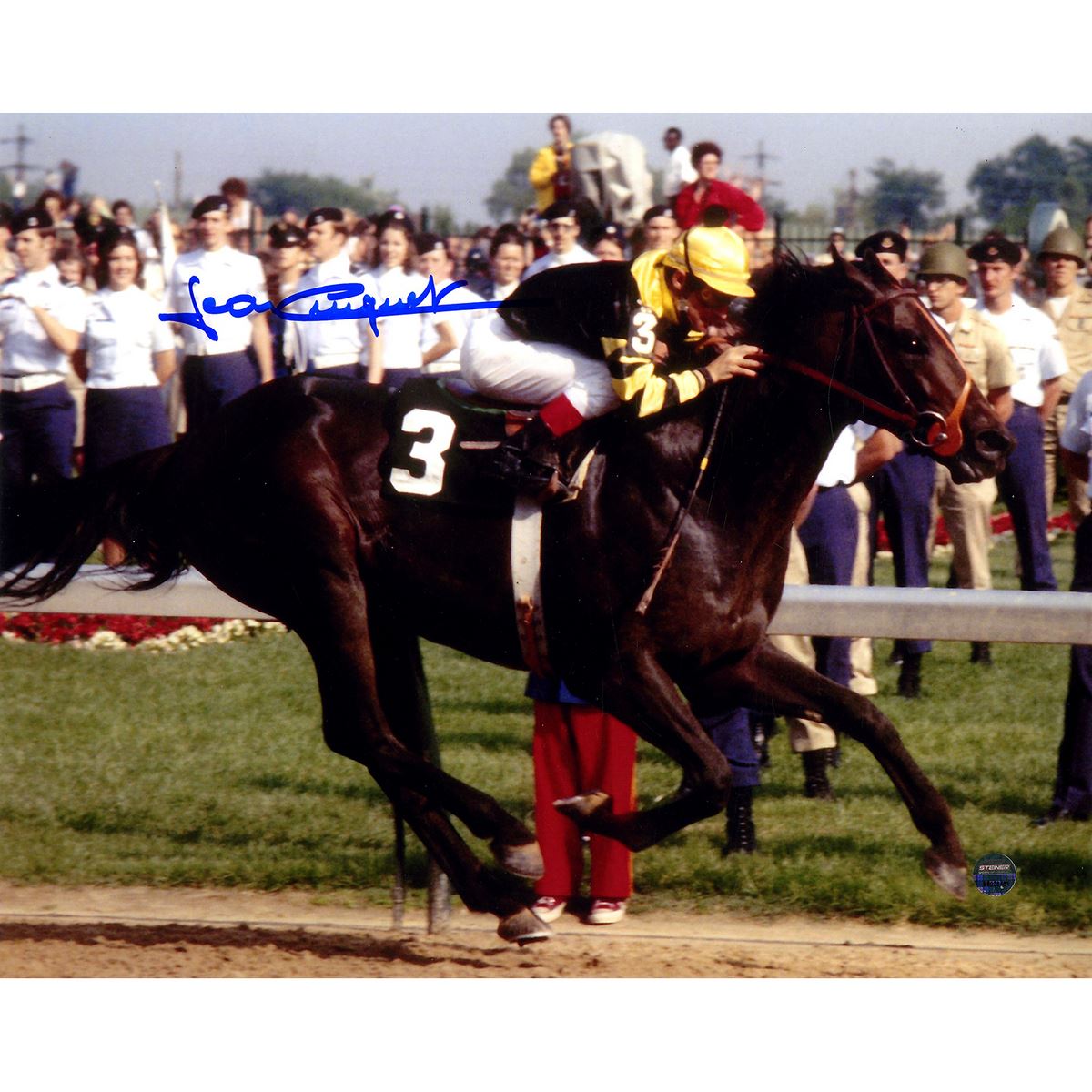 Jean Crugeut Signed 1977 Triple Crown Winner Seattle Slew Side View 8x10 Photo