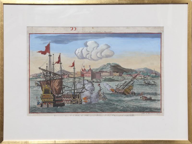 Jean-Francois Daumont, Vue perspective de la Ville de St. Francois, Hand-Colored Etching