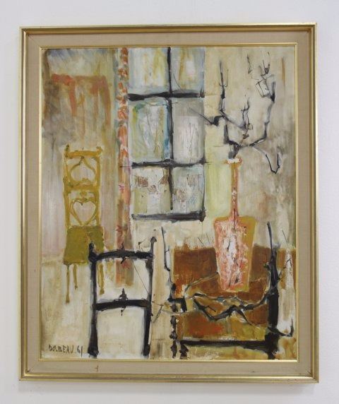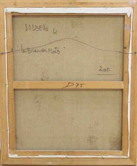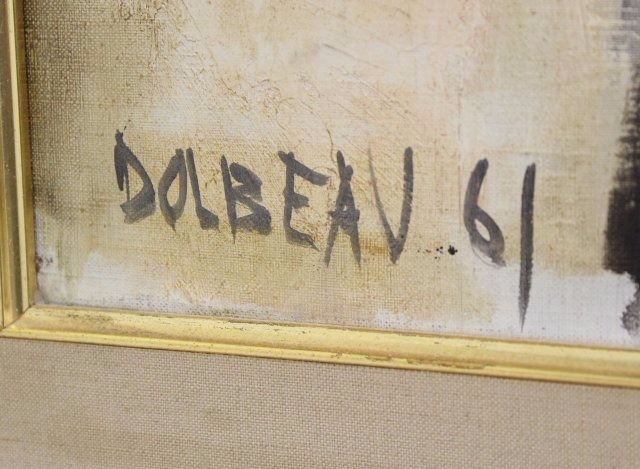Oil on canvas. Signed and dated 1961 lower left and titled rear. Jean-Francois Dolbeau (born 1936). Approx. 28" H x 23" W unframed, 32" H x 27" W framed.