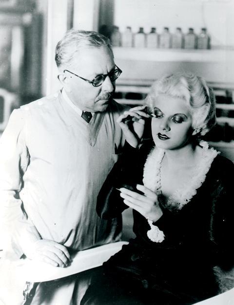 Jean Harlow from The Max Factor Collection / (1) 8 x 10 Negative of Jean Harlow Using Eyelash Brush with Max Factor Beside Her / (1) 7 x 10 Black & White Photograph stamped "Master File Publicity Dept Max Factor"