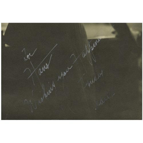 <B>Jean Harlow Photo Signed by Mama Jean.</B></I> A 10" x 13" b&w photo of Jean Harlow, inscribed "For Hans" and signed by Harlow's mother. In Fine condition with some fading to the inscription, light wear, and mild tanning.<BR><BR><b>Shipping:</b> Large Flat (<a target="_blank" href="http://www.heritageauctions.com/common/shipping.php">view shipping information</a>)