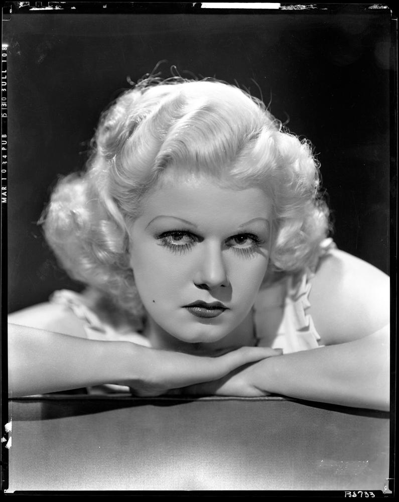 (M-G-M, 1934) Black-and-white 8 x 10 in. camera negative on nitrate film of Jean Harlow from The Girl from Missouri by Clarence Sinclair Bull; with MAR 10 34 PUB 530 BULL stamped on the border, B8733 in India ink on the border and extensive retouching. Fine; with smudging, missing upper right corner tip and mounting hole at the corner tips.