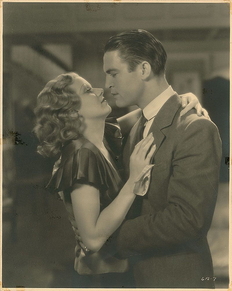 Stunning original matte-finish 7.25 x 9.25 portrait of Harlow and Chester Morris embracing in the 1944 film Red-Headed Woman, bearing a Gene Andrewski stamp to the reverse. In fine condition, with some adhesive remnants to borders.