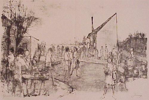 AT THE MARKET from Le Printemps, a double-page color lithograph, signed in pencil, artist’s proof, sheet 15 x 22”, blindstamp. $400/600