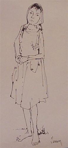 Jean Jansem (b. 1920) French/Armenian, YOUNG GIRL, pen and ink drawing on paper, 26 ¾ x 18 ½”,...