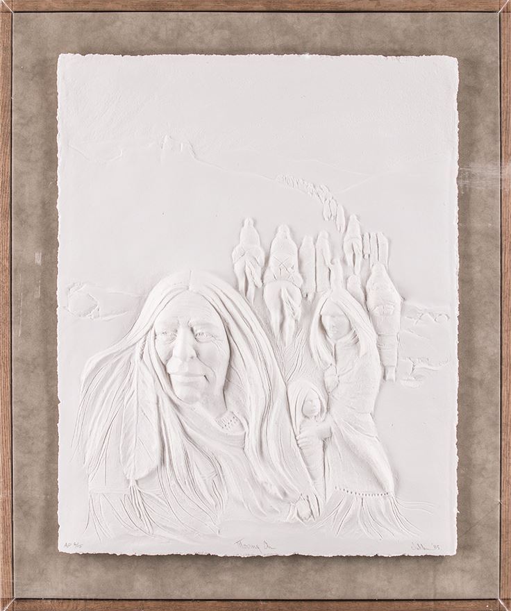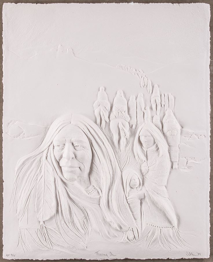 Jean Juhlin (20th century). Moving On. 30" x 24" paper relief. Signed and dated '85 lower right. AP 6/15 lower left.