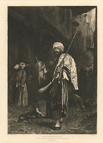 Jean-Leon Gerome | Stephen J. Ferris etching "The Old Clothes Dealer, Cairo - A fine impression on cream wove paper, published for the American Art Review c. 1880. The American Art Review was a lavishly produced revue featuring Original etchings by Moran and other leading American artists of the era, which only lasted three years and is now quite scarce. - Image size: 9 1/4 x 6 1/2 inches - Professionally Framed & Matted - Comes With Certificate - -