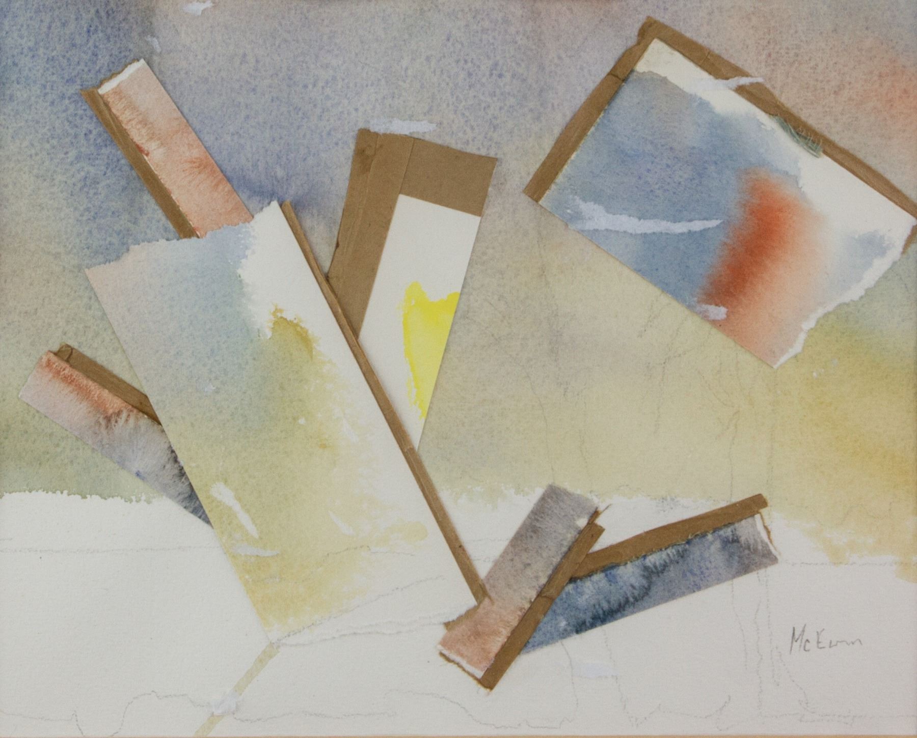 Abstract painting; mixed media and collage on board; framed; signed Jean McEwen (1923-1999), Canadian artist; 8 inch x 10 inch