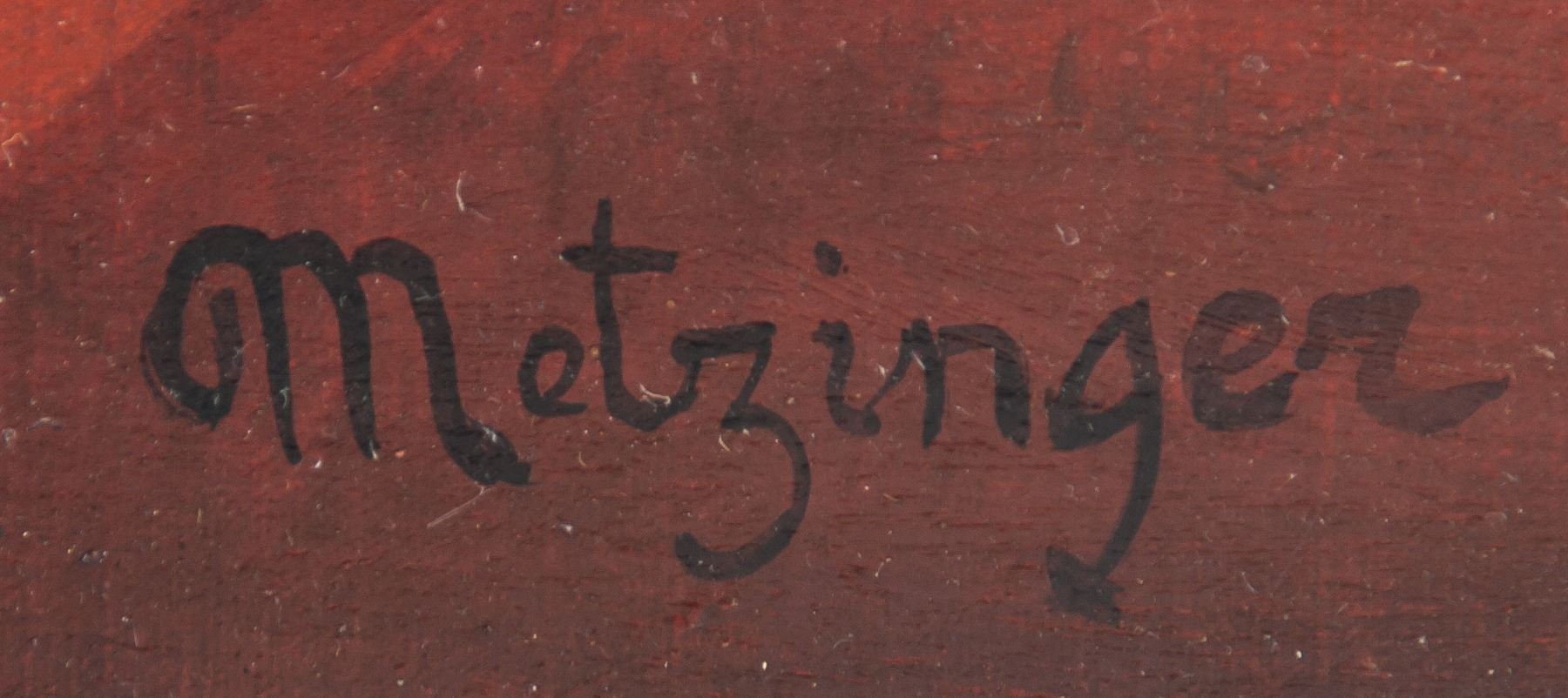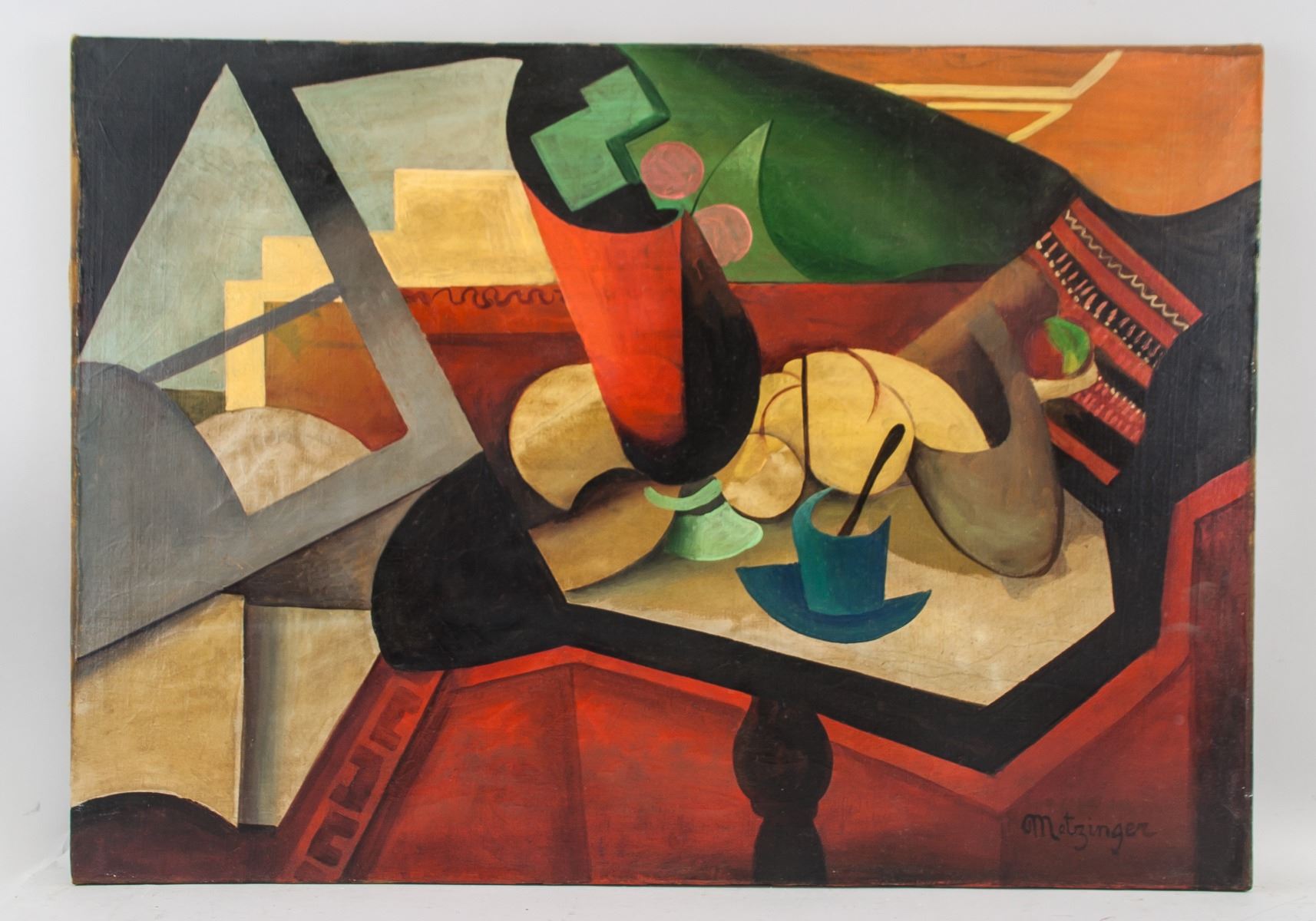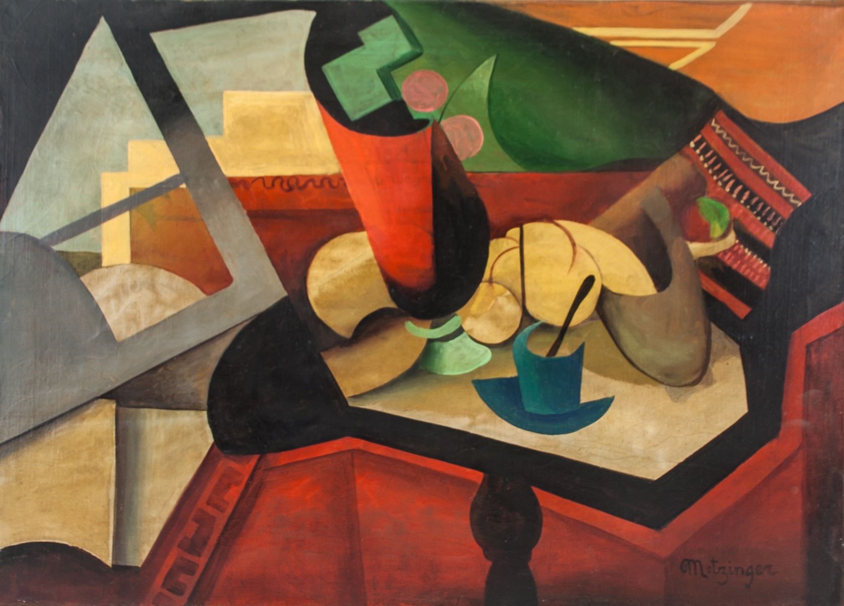 Oil on canvas. Featuring cubist still life of fruits. Signed Metzinger on the lower right corner. Attributed to Jean Metzinger (1883-1956, French). 50 x 70 cm (19.7 x 27.6 inches). PROVENANCE: Private Canadian collection (Toronto, ON). Acquired from above by current owner (Netherlands)