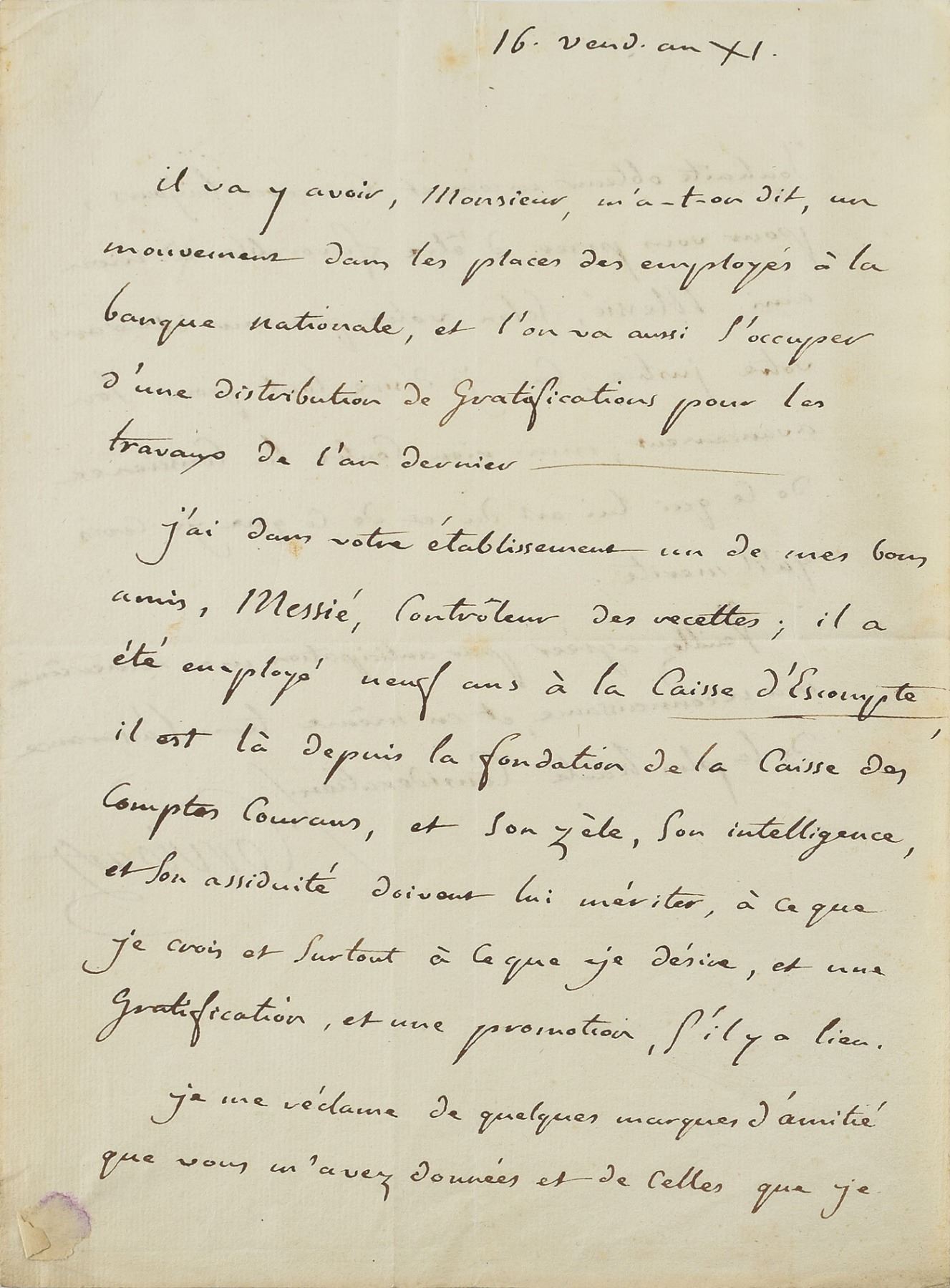 French physician (1755–1821) who gained a reputation as an expert in cardiology and was Napoleon’s personal physician. Untranslated ALS in French, signed “Corvisart,” one page both sides, 6.25 x 8.5, October 8, 1802. In fine condition, with a small seal remnant to the lower left corner of the first page, and seal-related paper loss to the integral address leaf.