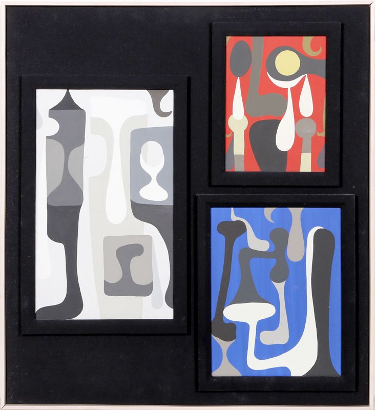 Medium: Three Oil Paintings mounted on fabric, signed verso