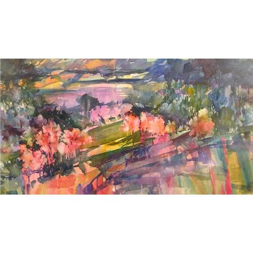 Canadian ASA, CSPWC, FCA [b. 1962] FOOTHILLS IN AUTUMN watercolour on paper 32 x 58 in. (81.3 x 147.3 cm)