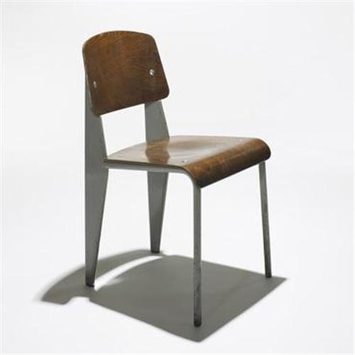 Jean Prouve<BR>Standard chair no. 305 from the Maritime Exchange, Paris<BR>Ateliers Jean Prouve<BR>France<BR>enameled steel, oak<BR>16.25 w x 18 d x 32 h inches<BR>Prouve utilized a unique metallic enamel on his furniture from the Maritime Exchange, Paris.<BR>Provenance: <BR>Maritime Exchange, Paris<BR>Literature: <BR><i>Jean Prouve Complete Works Volume 3: 1944-1954</i>, Sulzer, ppg. 35, 208-211 <i>Jean Prouve</i>, Galerie Patrick Seguin and Sonnabend Gallery, ppg. 234, 266-269 <i>Jean Prouve</i>, Galeries Jousse Seguin and Galerie Enrico Navarra, pg. 41, 46<BR><BR>Condition of the item is not included in this description. Condition reports are available from Wright upon request. Wright strongly recommends that you review a condition report for each item on which you plan to bid.