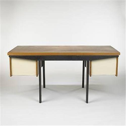 Jean Prouve Standard desk Ateliers Jean Prouve France, 1942 oak, enameled metal 63"w x 33"d x 29.5"h <BR>Literature: Jean Prouve: Oeuvre Complete, Volume 2: 1934-1944, Sulzer, pg. 289 illustrates diagrams of the desk with variations <BR>Provenance: Les Ateliers de Maxeville