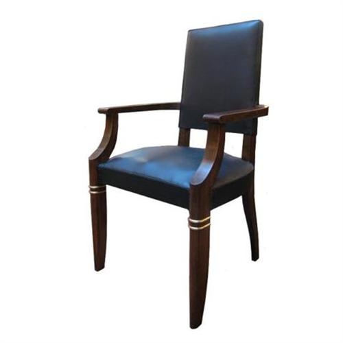 Solid walnut and black leather Jean Prouve style armchair.</em></td>